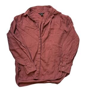 Athleta Playa Linen Shirt Blouse Sz Medium Tawny Rose Button Front Beach Travel