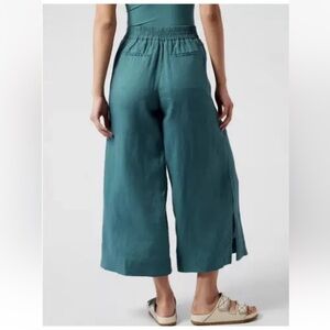 Athleta Playa Linen Wide Crop Borealis Green 100% Linen Zipper Pockets