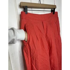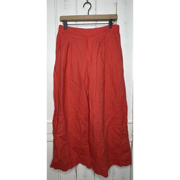 Athleta Playa Linen Wide Leg Crop Pant Beachy Boho Lagenlook Coral Orange 12