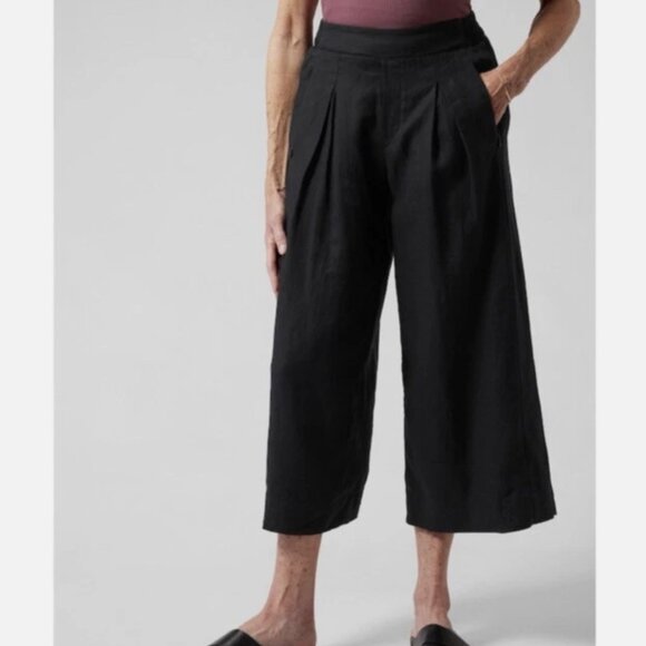 Athleta Playa Linen Wide Leg Crop Pant in Black - 12