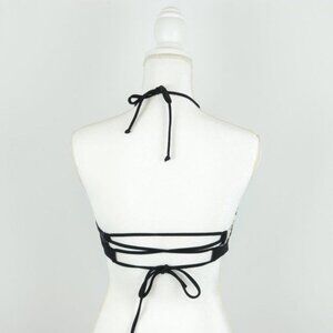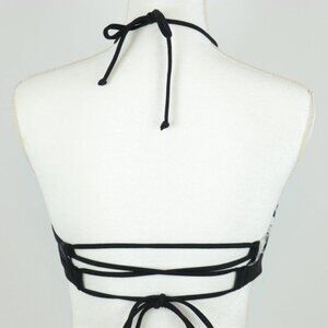 Athleta Polynesia Women's XS Black Floral High Neck Halter Bikini Swim Top