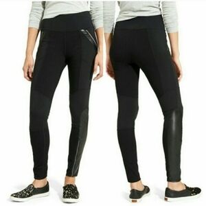 High rise streetwear vibes Faux leather trimmed leggings. Women's size small. Sienna S/ 77311
