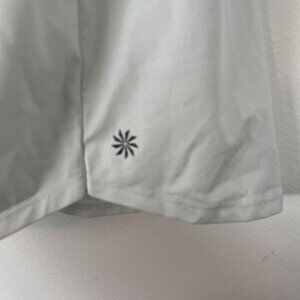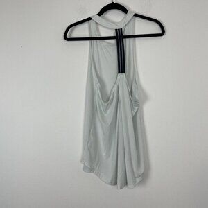 Elevate your activewear with this stylish Athleta Power Of She Woman's Racer Back Tank Top in size medium. This tank top features a solid pattern, scoop neckline, pullover closure, and a racerback strap type for maximum comfort during your gym and training sessions. Color is a very light blue almost white.