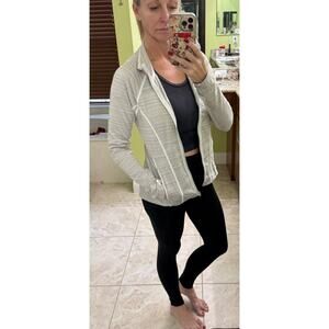 Athleta Powervita Elation Mesh Active zip jacket Medium oatmeal grey white