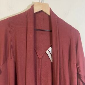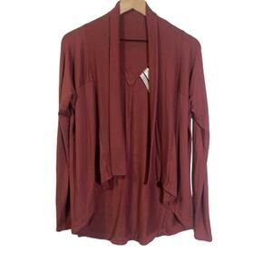 Athleta Pranayama Restore Wrap Open Front Cardigan Ribbed Accents Brick Red XS