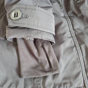 Very good pre-owned condition. Original coat came with a faux fur lining but missing on this item. Some minor shiny marks on fabric, esp. where snaps close. No other notable flaws/signs of wear