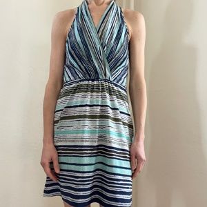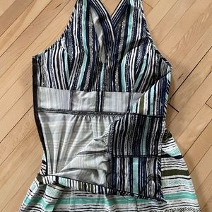 Athleta halter dress with elastic back and side zipper. Has removable cups in bodice.