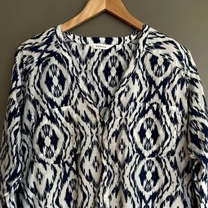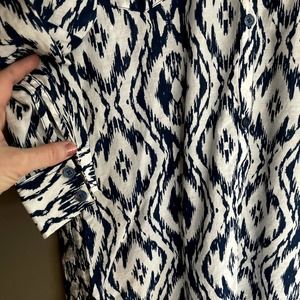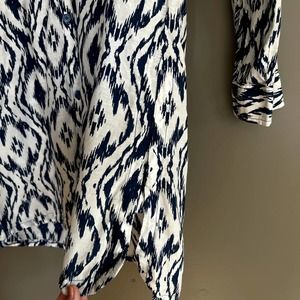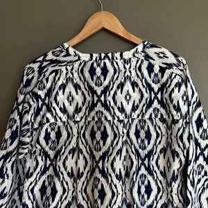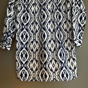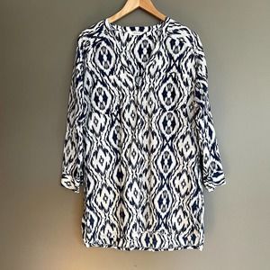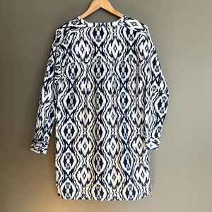 Athleta Printed Kaftan Shirt Dress Tunic Navy Blue White Ikat Medium Cover Up