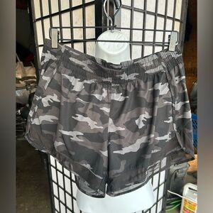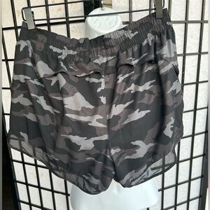 Brand: Athleta Sleek black camouflage shorts. Ideal for running and active days.