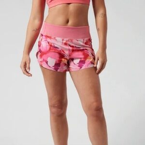 Athleta Printed Pink Floral Run With it 3.5 in Lined Athletic Shorts - Size L Large