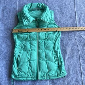 Athleta Puffer Vest Womens XXS Green Full Zip Zipper Pockets Colorful Quilted