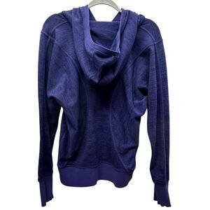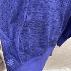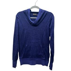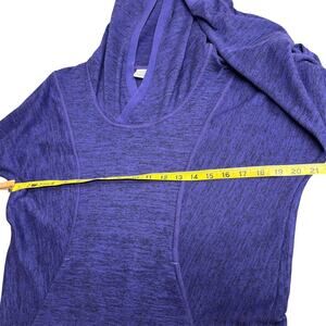 Athleta Pullover Hoodie Women Medium Dolman Sleeve Heathered Purple Kangaroo Pocket Thumb Hole on Sleeve Fitted Waist