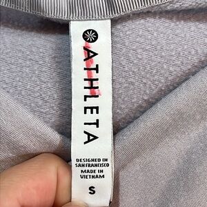 Athleta brand Purana wrap sweatshirt. Size small. Twilight lilac (pale purple / grey). Hooded. Relaxed / oversized fit. Long sleeves. Soft cowl neck. Cozy & warm. Slouchy yet stylish. Pockets. Great for lounging. Preloved. Please see all photos for condition.