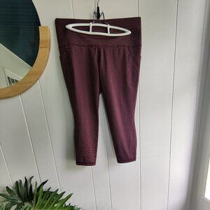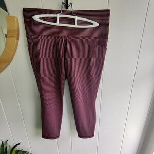 Athleta Purple Capri Stretch Pant. Sz L Petite. purple with yellow stripes.