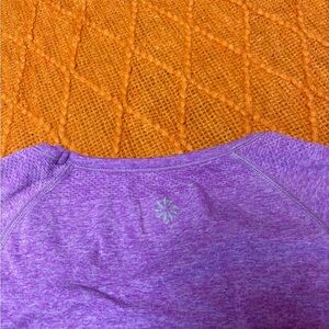 This Athleta top features a vibrant purple hue and a flattering fitted design with cap sleeves. The ruched detailing along the sides enhances its stylish appeal, making it perfect for both workouts and casual wear. Crafted from a stretchy, moisture-wicking fabric, it ensures comfort and performance.