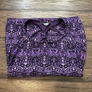 Elegant dress with intricate purple floral design. Ideal for any occasion.