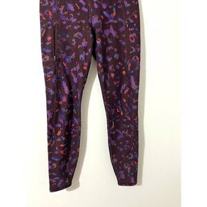 Athleta Purple Plum Rainier Leopard Tight Fleece Lined Leggings Size S