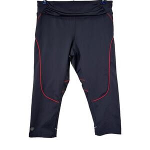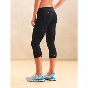 Athleta Quick Step Capri Athletic Leggings Black and Pink trim 819214