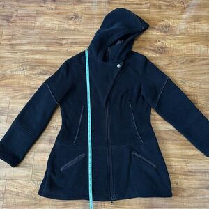 Athleta RARE Sherpa Longline Full Zip Hoodie Jacket Size Medium Black