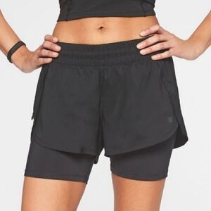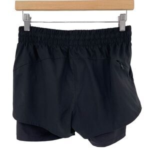 Athleta Racer 2 in 1 Shorts Layered Black Zip Pockets 291755 Women Size XS