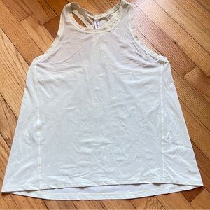 Athleta lightweight performance tank in soft light lemon tone. Features racerback design and flowy silhouette — perfect for gym, yoga, running, or layering.