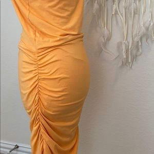 Super soft t-shirt material. Flattering ruching detail on both sides! This could easily be worn year round in a warmer climate. I would throw on a denim jacket or kimono to dress it up a bit. Great material for travel and easy for throw on and go! Features a shelf bra and removable pads. Bra has breathable mesh.