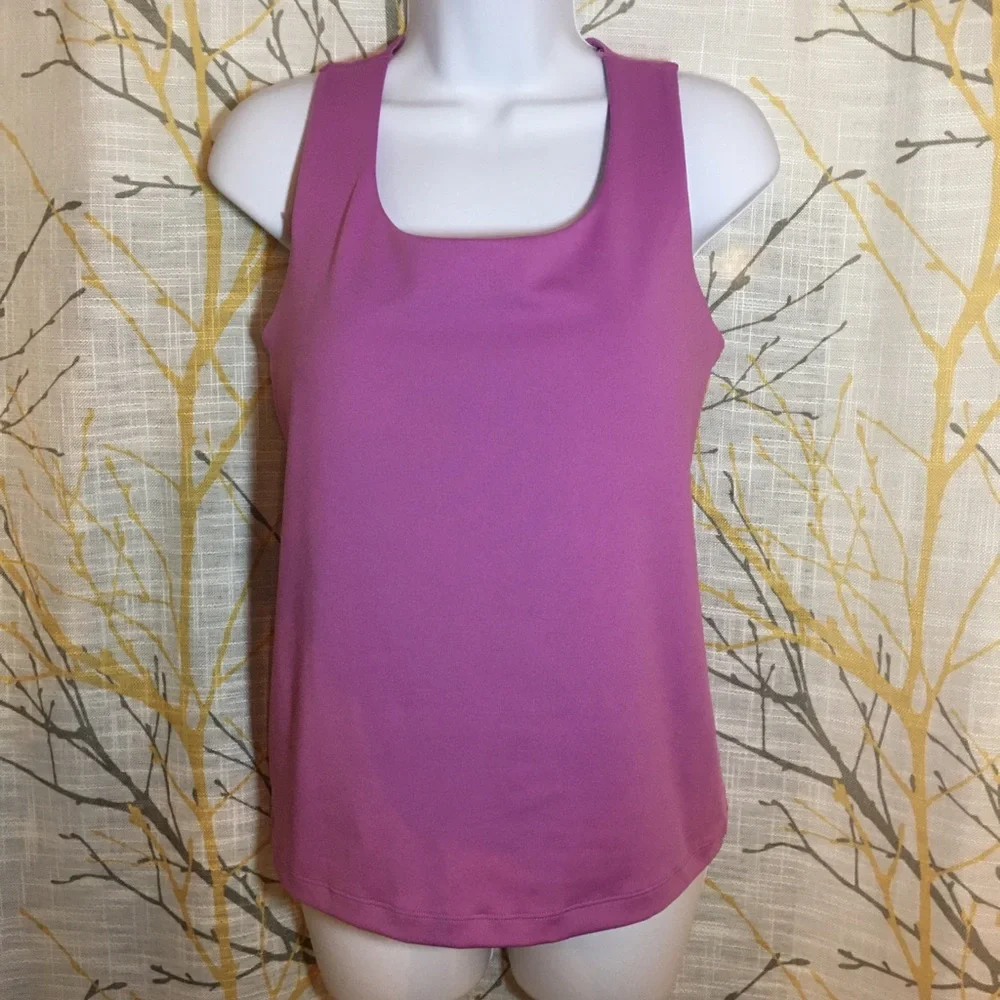 Pretty in pink! Athleta tank with built in underwire bra. Size 38B. Scoop neck, form fitting stretchy material.