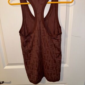 Athleta brownish racerback tank top with a athleta word pattern