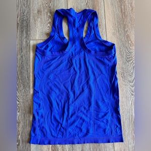 Moisture-wicking, 100% nylon workout tank. Inside bottom has anti-ride-up grippy dots to help keep in place. Very good pre-owned condition, hardly worn