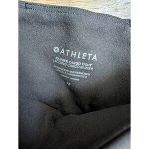 Athleta Rainier Cargo Leggings Womens Medium Black High Rise Tapered Ankle Zip.