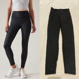 Athleta Rainier High Rise Tight, grey/black camo 16545