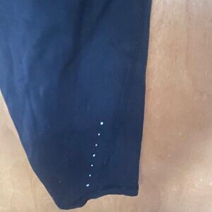 XXS Petite. Black tights, lined. Zipper pockets, back pocket, small front pocket. Reflective details. 25". Good condition