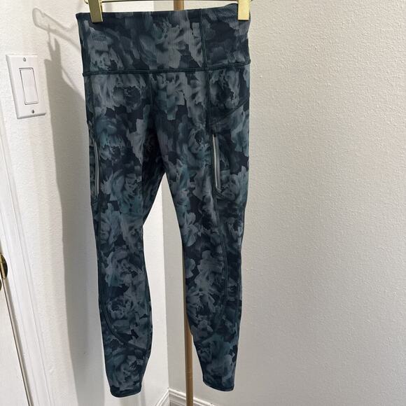 Athleta Rainier Leggings Pants Spliced Floral High Rise Green Blue Small Tight