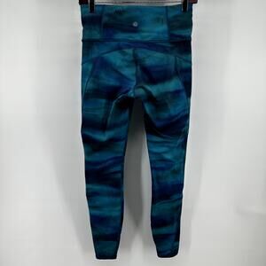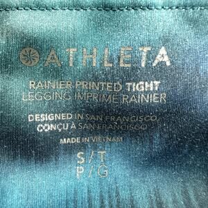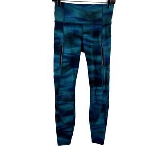 Athleta Rainier Printed Tights Leggings Zipper Pockets High Rise Yoga Blue Small