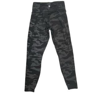 "Stay stylish and comfortable during your workouts with these Athleta Rainier Reflective Tights. Perfect for running, yoga, or everyday wear, these leggings combine performance and fashion with a sleek black camo print and reflective details.