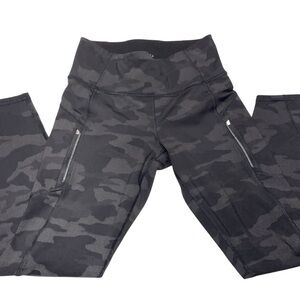 Athleta's Rainier Reflective Tight in a brown black camo print.