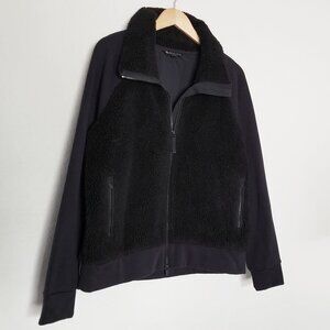 Athleta Range Sherpa Full Zip Jacket Black Teddy Fleece Sweatshirt M Athleisure