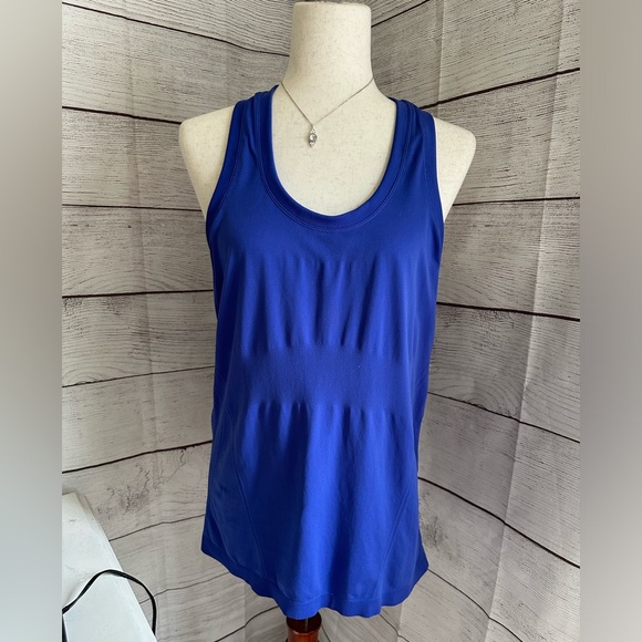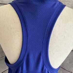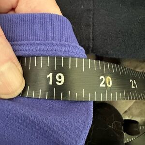 Beautiful color of blue, almost looks as if it has a little bit of purple to it. I don’t believe this has ever been worn. It is an excellent flawless condition. it has an interesting pattern around the waist area. Almost 20 inches from pit to pit. 27.5 it isn’t perfect condition. Comes from a non-smoking non-perfume wearing home.