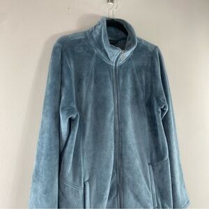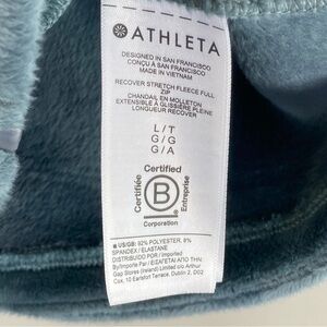 Athleta Recover Stretch Fleece Full Zip Jacket Sage/Gray Pockets Mock Neck. Very good preowned condition. No holes or stains. Color may vary slightly due to lighting. Please review photos closely for verification of condition and measurements. Please ask any questions before purchasing. Comes from a smoke free, pet free / but pet friendly home. If you have allergies, please ask.