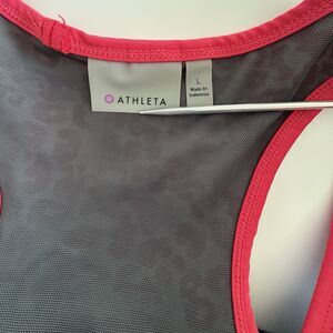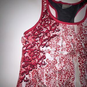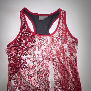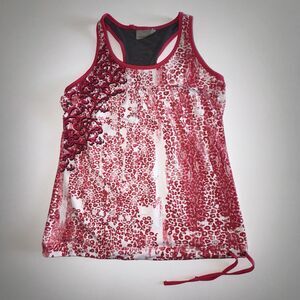 Athleta Red Animal Print Tankini Swim Top Size Large Racerback Drawstring Hem
