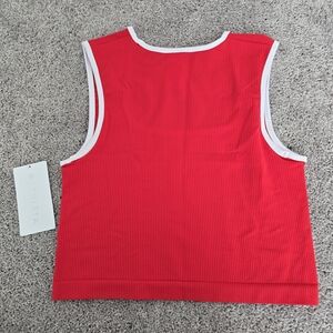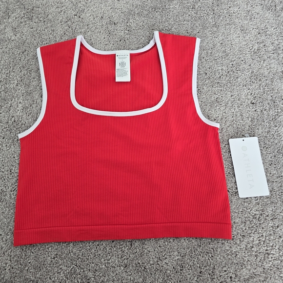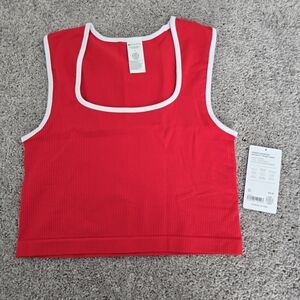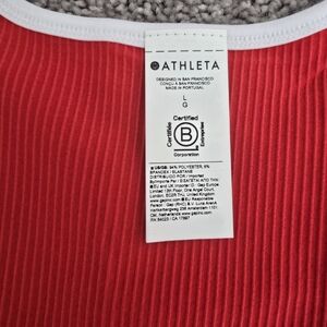 Athleta red ribbed tank top with white trim. Stylish and comfortable.