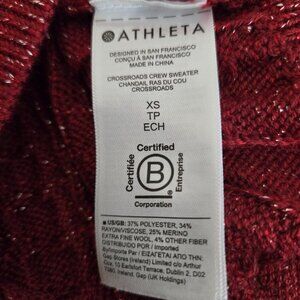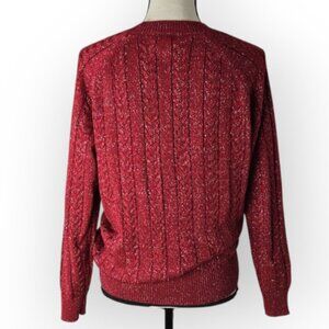 Athleta Red Silver Metallic Sparkle Cable Knit Sweater XS