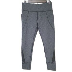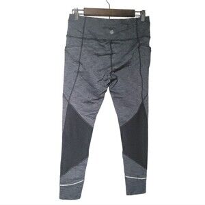Athleta Relay 2.0 heather gray leggings. Mid rise. Mesh panels at the calf. Adjustable waist. Side pockets.