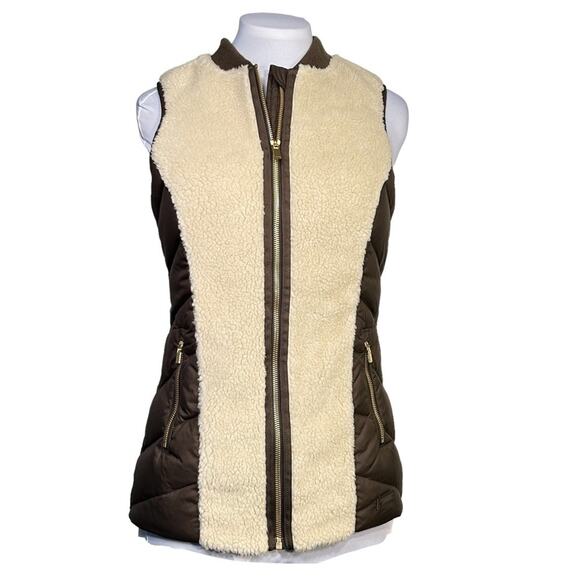 Athleta Responsible Tundra Down Vest Faux Sherpa Olive Brown SZ XXS