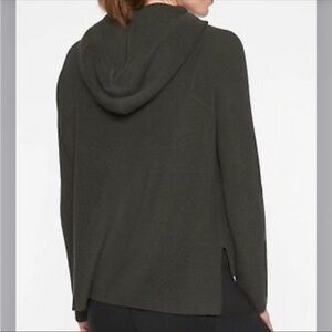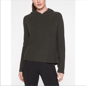 Athleta Rest Day Olive Dark Green Ribbed Pima Cotton Silk Blend Hoodie Sweater