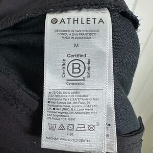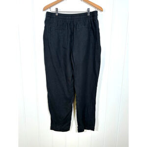 Athleta Retreat 100% Linen Ankle Pant Med. Black Straight Fit High Rise Pull-on