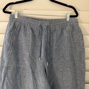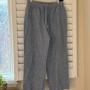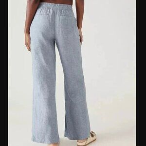 Athleta Retreat 100% Linen Wide Leg Pant Chambray Blue Pants Size 12