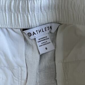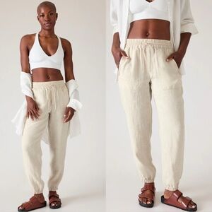 Athleta Retreat Linen High Rise Jogger Pants White Beachy Coastal Travel Size 8
