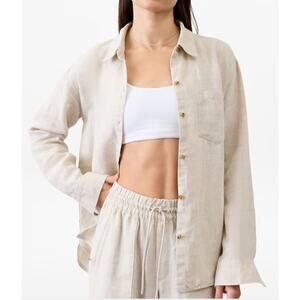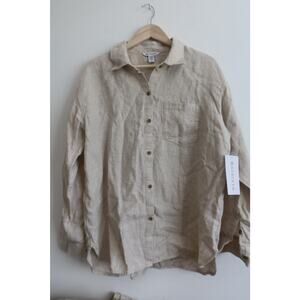 Athleta Retreat Linen High Rise Wide Leg Pants Set w/Linen Long Sleeve Top Large