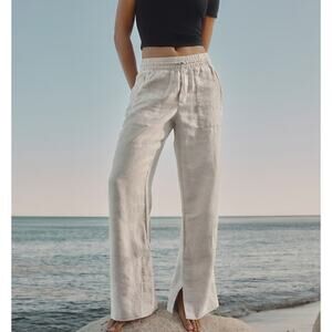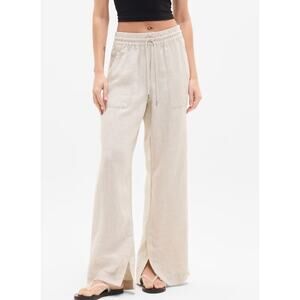 Athleta Retreat Linen High Rise Wide Leg Pants Set w/Linen Long Sleeve Top